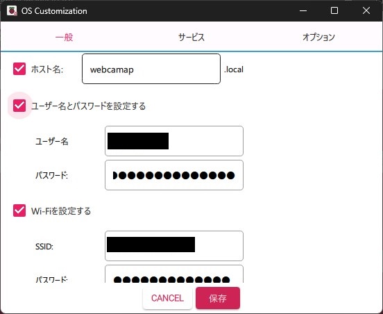 RaspberryPi Imagerで書き込みOption設定