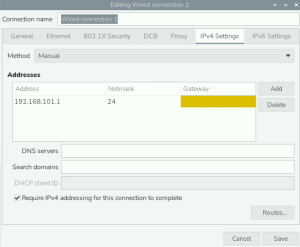 Methodを"Manual"に変更、"Address","Netmask"を設定して"Save"を選択