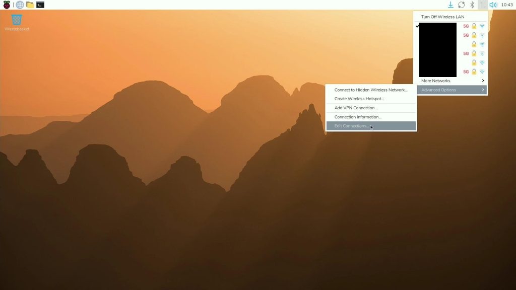 ラズパイにとりあえず画面とキーボード、マウス、LANケーブルを接続して、GUIから有線ネットワークの設定を行います。