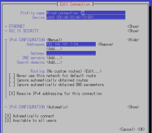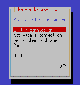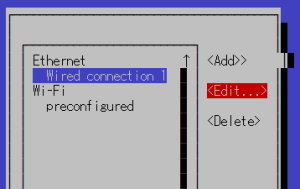 次にネットワークの自動接続設定を"nmtui"から行います。この設定は別に不要かもしれません。