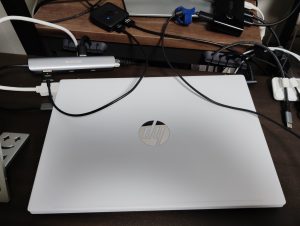 また、仕事で使用する別のHP製ノートPCも同様の使い方をしていますが、こちらにUGREEN Revodok105を接続して画面出力しても今回のような症状は出ませんでした。